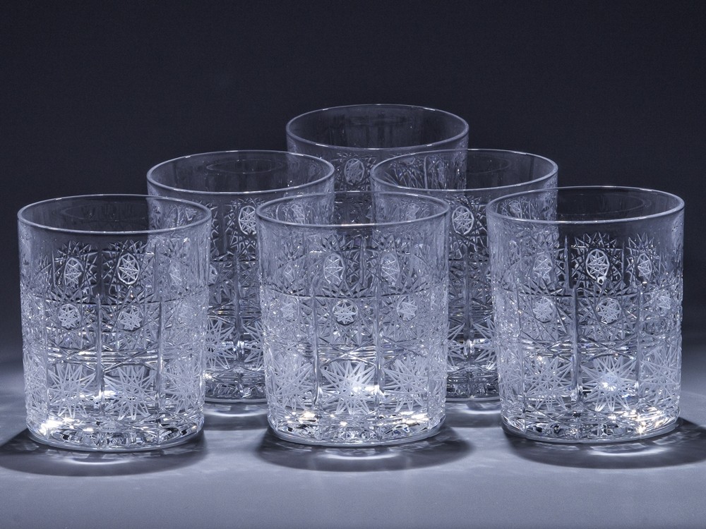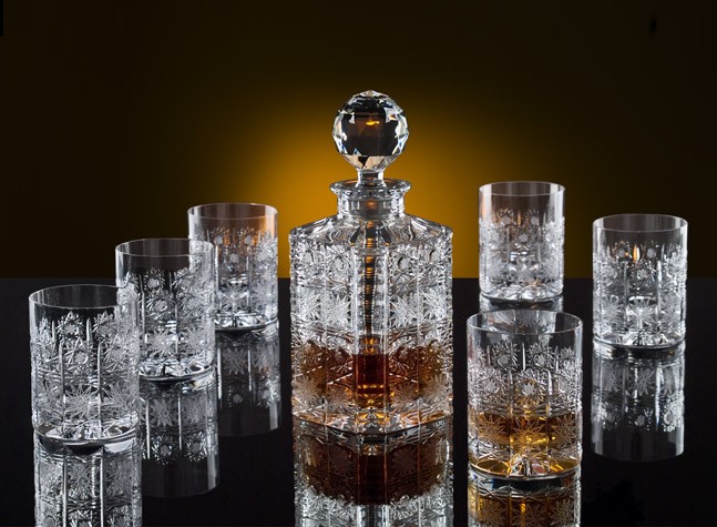 Coffret de 6 verres à whisky. Collection Classique. Soufflés et décorés à la main. Cristal de Bohême. Style le plus purement traditionnel dans le cristal de Bohême. Il est pleinement taillé et décoré pour créer un éclat et une lumière aux scintillements les plus éblouissants.