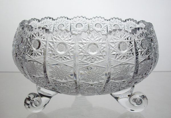 Coupe sur trois pieds en cristal de la Collection Classique. Cristal de Bohême. Soufflée et décorée à la main par les maîtres verriers de la région de Bohême en République Tchèque. Article en cristal très apprécié, fortement travaillé et décoré.