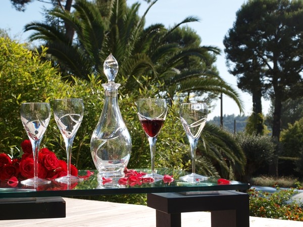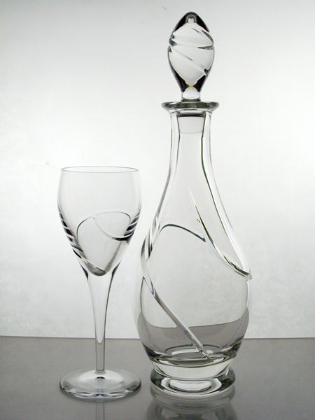 Carafe et 6 verres à vin. Collection La Spirale.