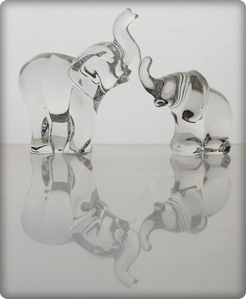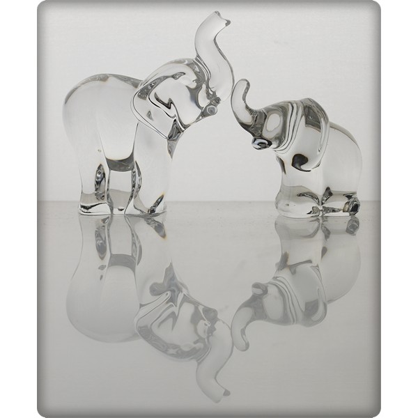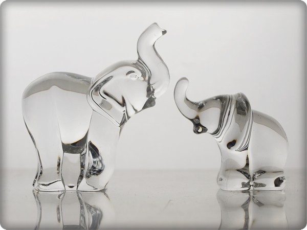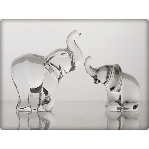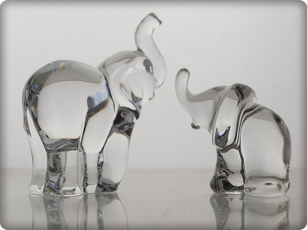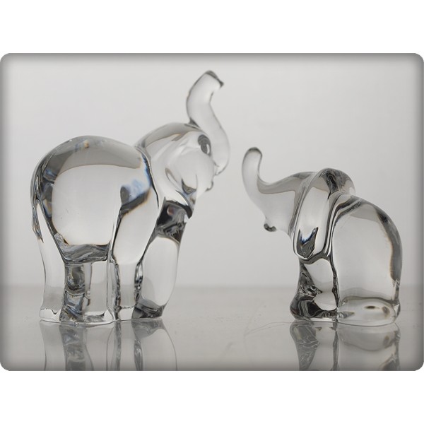Famille des éléphants en cristal. Deux belles figurines d'éléphants en cristal.