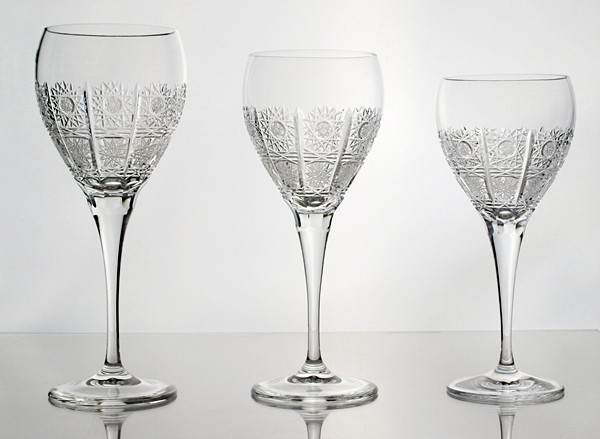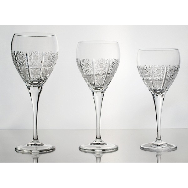 Coffret de 6 verres à vin 27cl. Cristal de Bohême. Gravés à la main. Style le plus purement traditionnel dans le cristal de Bohême. Il est pleinement taillé et décoré pour créer un éclat et une lumière aux scintillements les plus éblouissants. Un vrai plaisir, que ce soit pour l’œil ou à l’usage.
