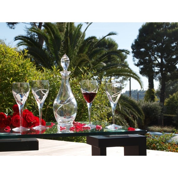 Coffret de 6 verres à vin rouge. Collection La Spirale. Soufflés et décorés à la main. Cristal décoré avec élégance et simplicité. Cette collection est issue d’un cristal de première qualité relevé d’une touche de raffinement grâce à une simple spirale décorative. Un vrai plaisir, que ce soit pour l’œil ou à l’usage.