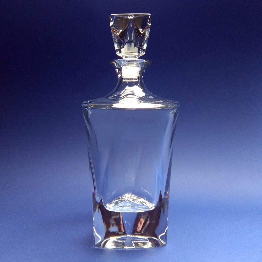 Carafe à décanter de 0,8 litre présentée avec un coffret de 6 verres à whisky 30cl. Cristal de Bohême.